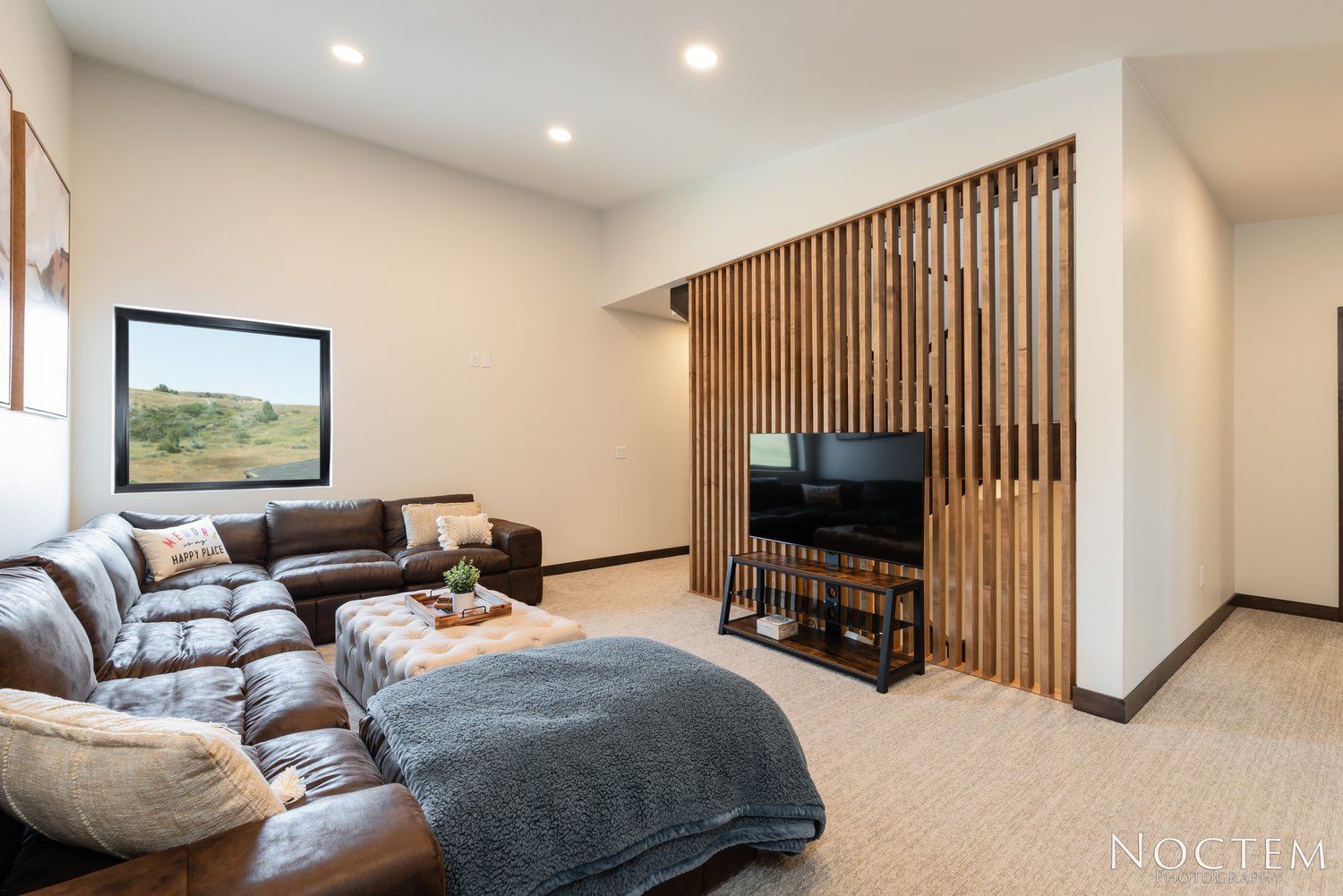 Cozy common area with large wrap-around couch